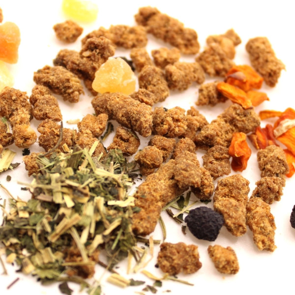 Wir ergänzen die Portion mit einer Mischung, die wichtige Mineralien, Spurenelemente und Vitamine enthält. Wenn du dich zusätzlich für eine Kräutervariante entscheidest, gibt es eine natürliche Unterstützung für die Gesundheit deines Hundes dazu.