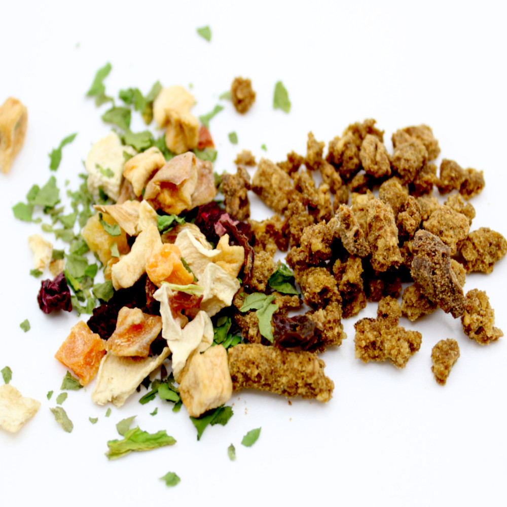 Die Tagesration der Trockenmischung sollte etwa 1% des Körpergewichts deines Hundes betragen. Die genaue Futtermenge wird von mehreren Faktoren beeinflusst, unter anderem Rasse, Alter und Aktivität. Wir empfehlen dir, das Gewicht deines Hundes zu beobachten und so den individuellen Bedarf anzupassen.