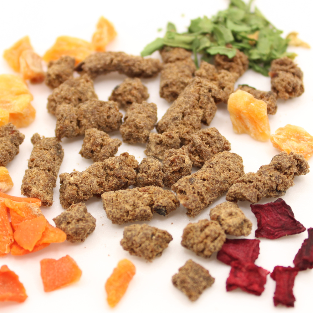 Die Tagesration der Trockenmischung sollte etwa 1% des Körpergewichts deines Hundes betragen. Die genaue Futtermenge wird von mehreren Faktoren beeinflusst, unter anderem Rasse, Alter und Aktivität. Wir empfehlen dir, das Gewicht deines Hundes zu beobachten und so den individuellen Bedarf anzupassen.